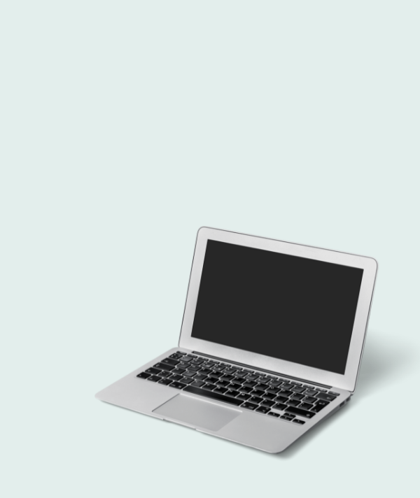 photo of woman holding fabric, displayed in a laptop frame